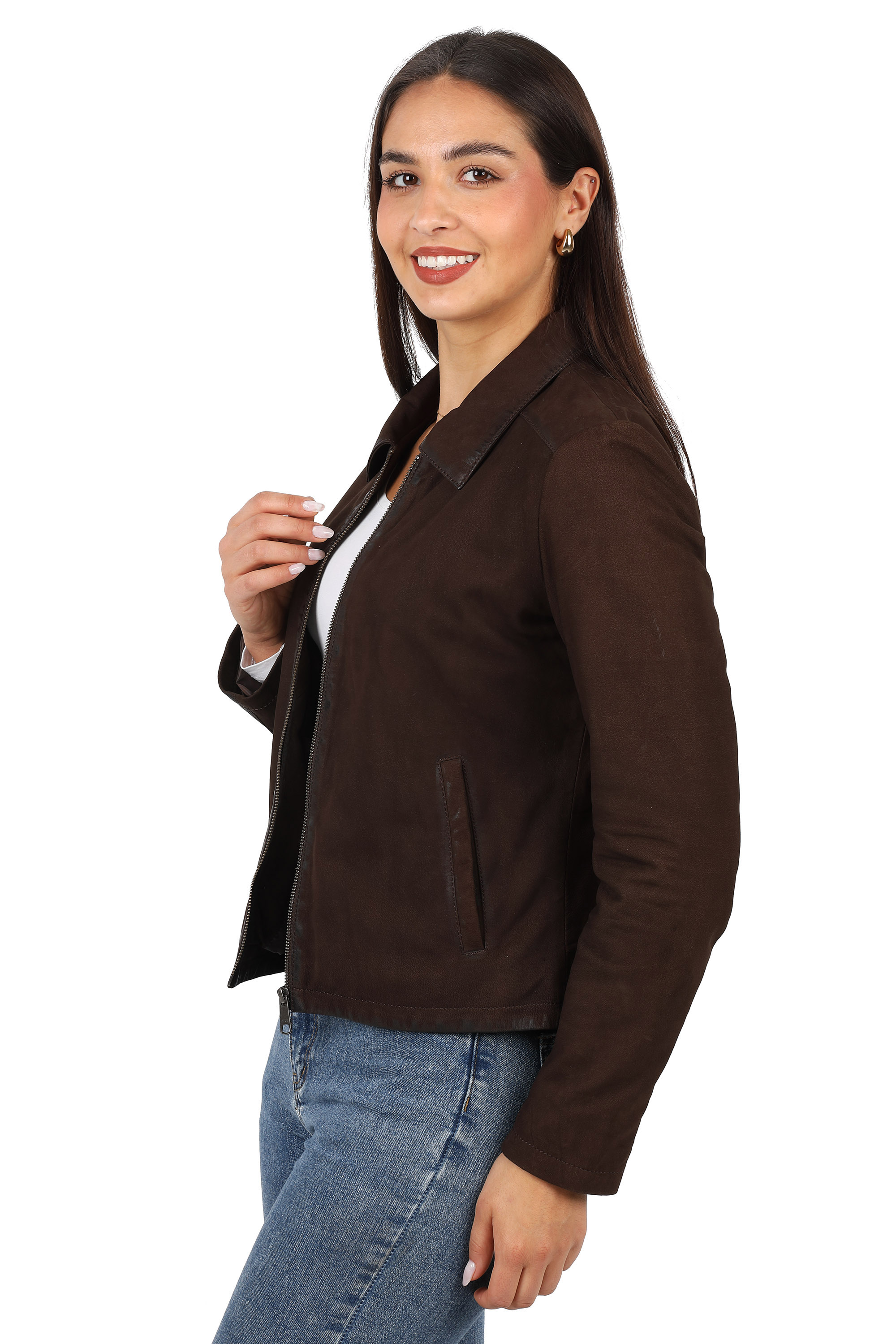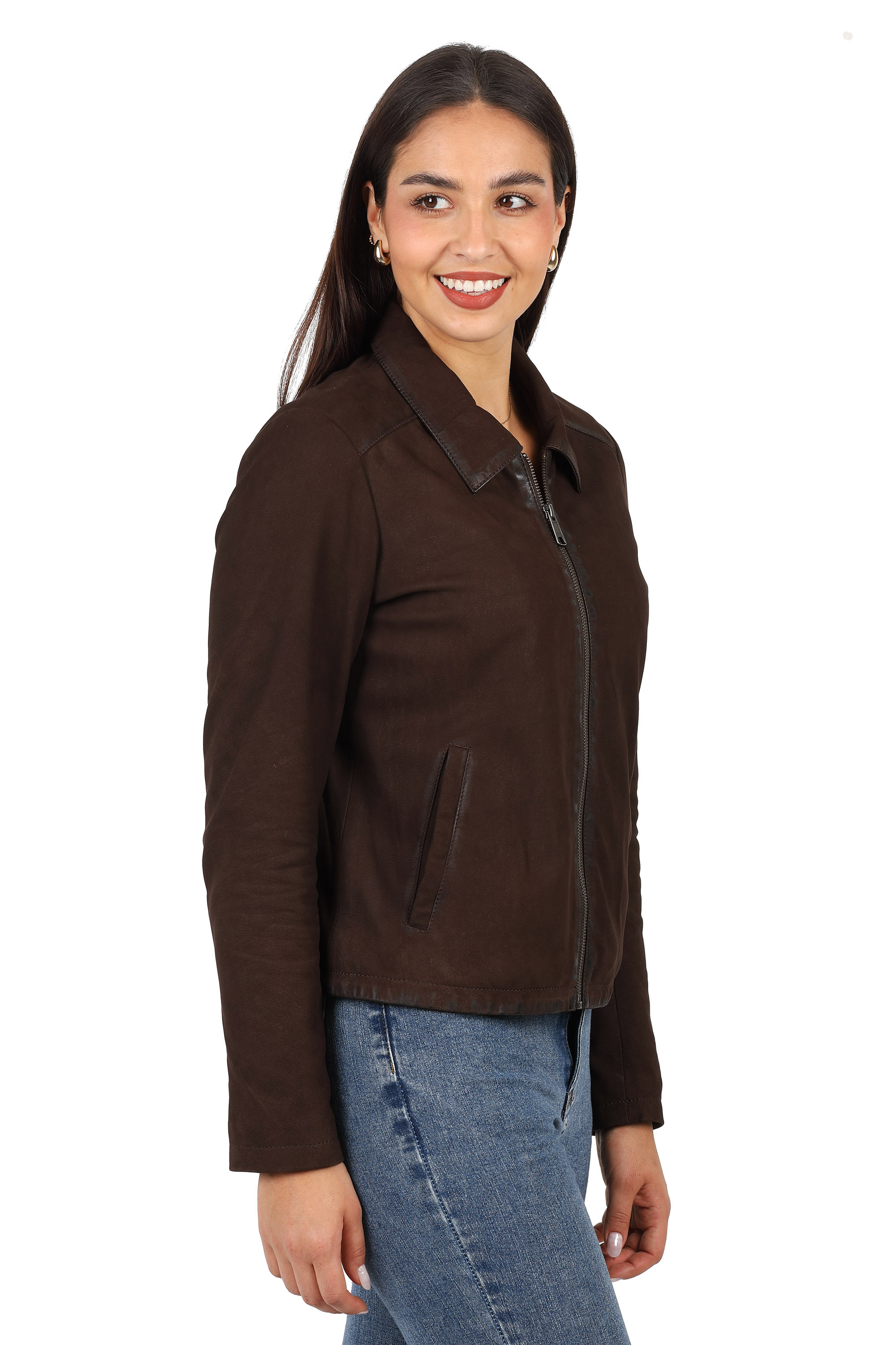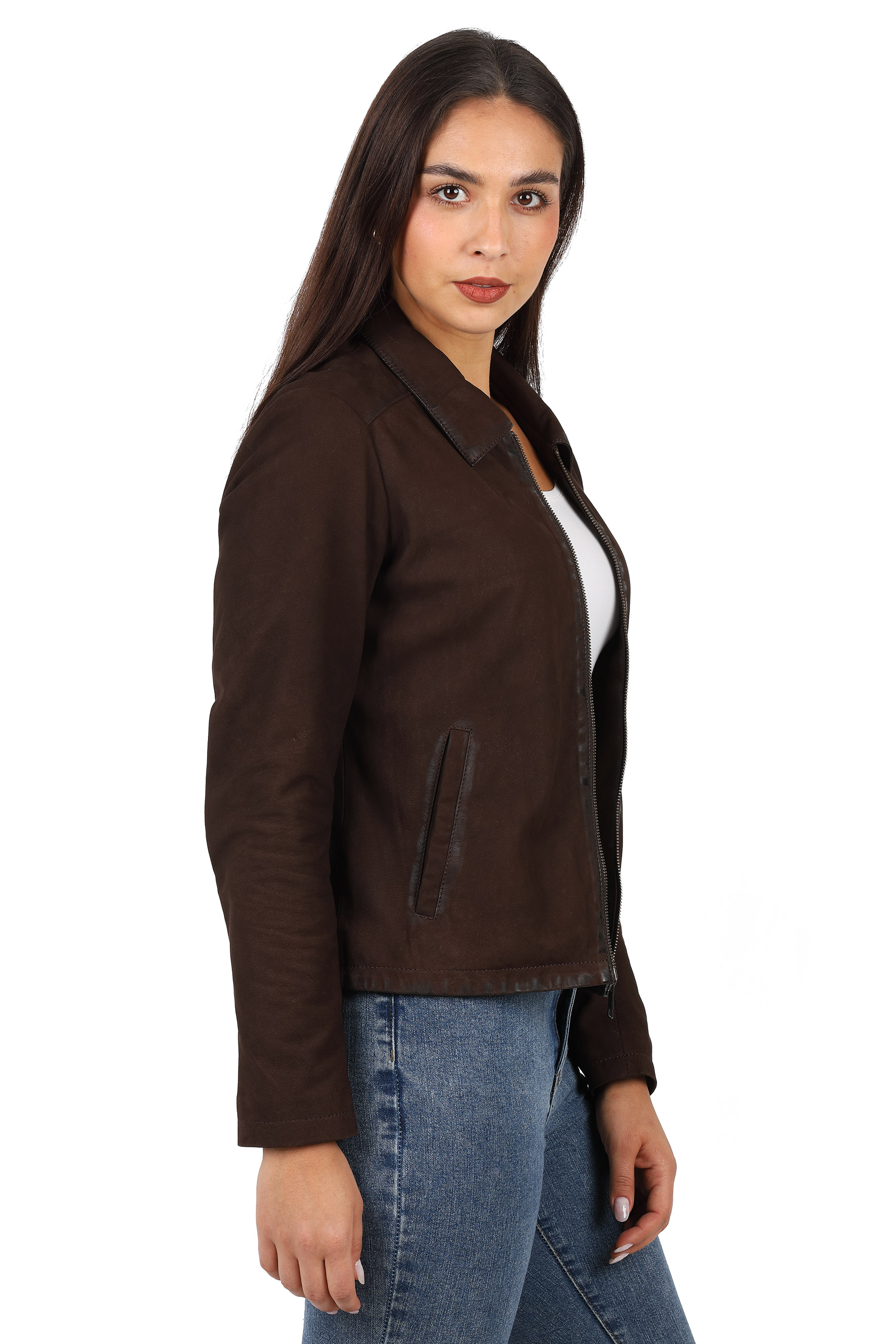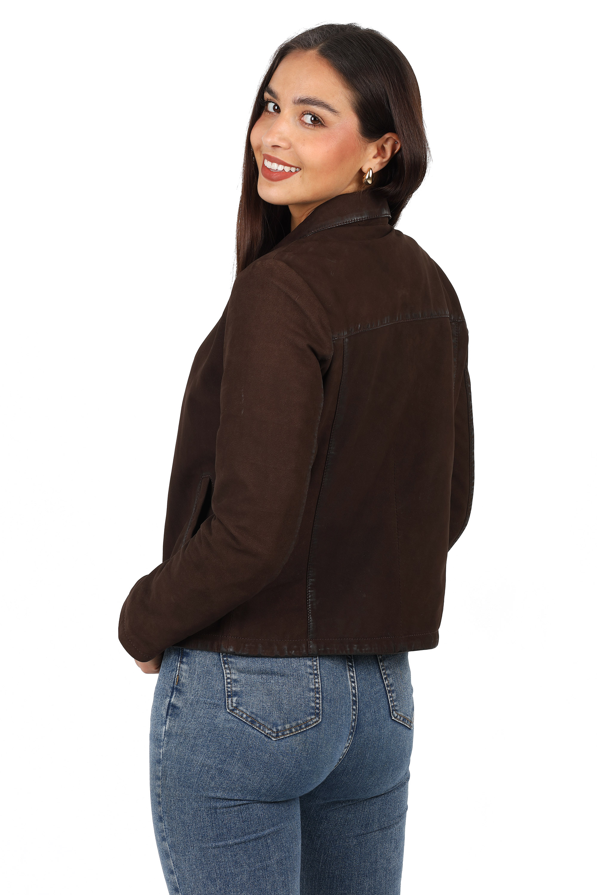 Damska kurtka skórzana w style „ new retro ‘’ .Wzorowana na kurtkach z lat 80-tych ubiegłego wieku znowu wraca do mody . Imitacja przetarć na szwach dodaje jej vintage’owego charakteru.